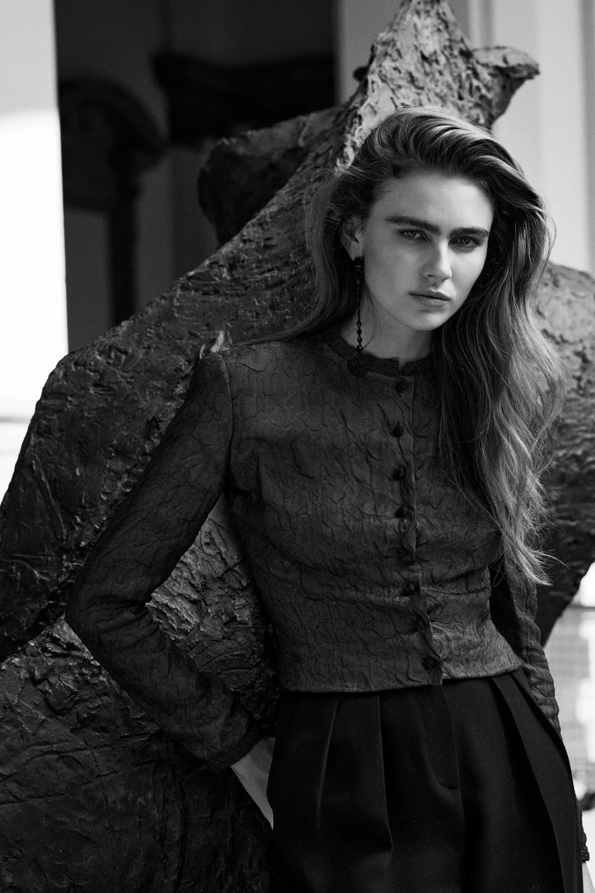 The pieces at the New York flagship pay homage to the city’s affinity for the color black and its distinctive Art Deco architecture. The centerpiece is a stunning tuxedo and blouse from the Fall-Winter 1992 collection.